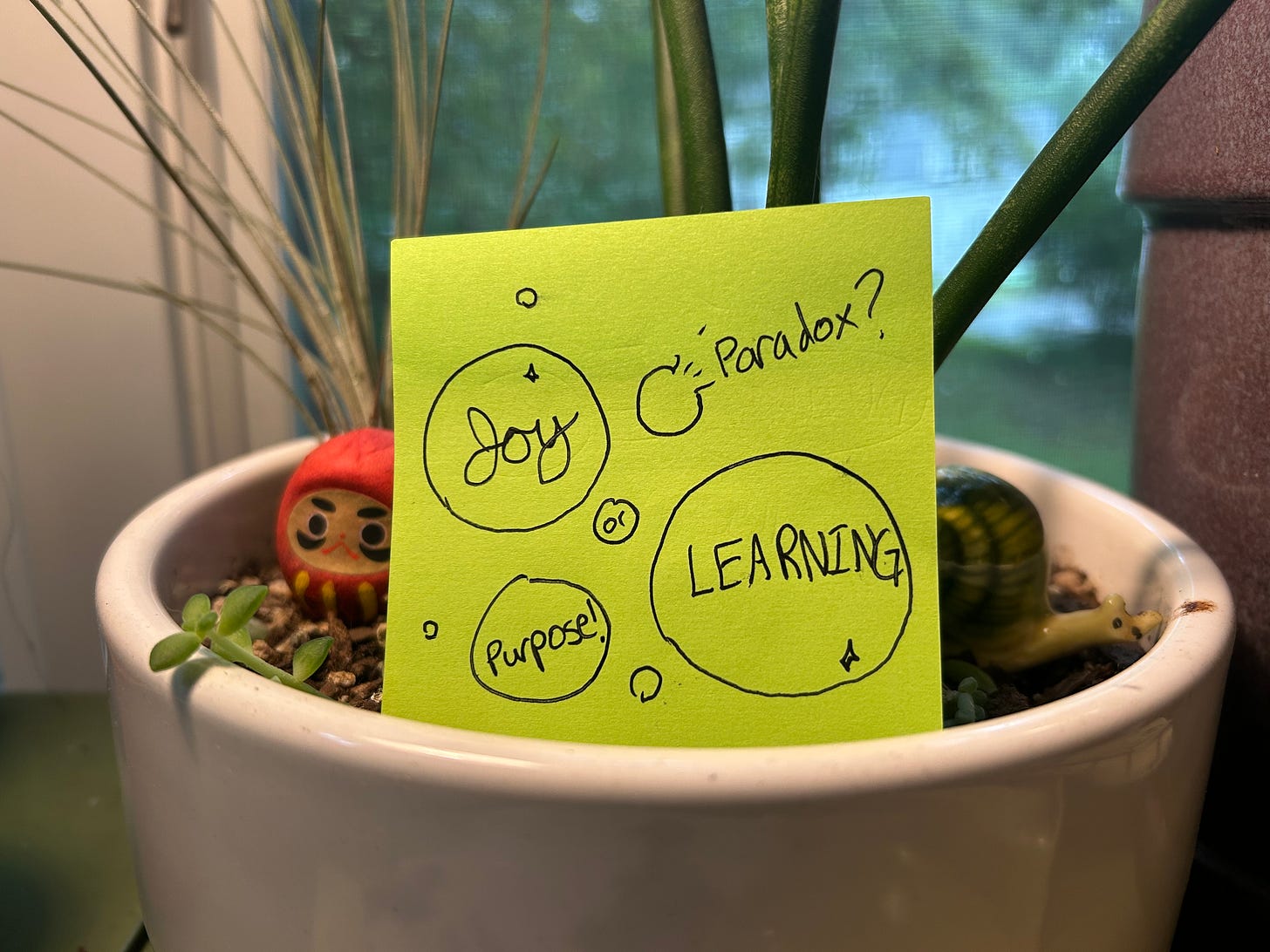This got me wondering about what people generally mean when they say “joyful learning”. It got me wondering about what I mean when I say that. As someone who makes sense of ideas through visual thinking and the natural world, I considered the seeming paradox of the words “joy” and “learning” with the image above. As a word nerd, I also looked up both words. Here is the dictionary definition for learning:
